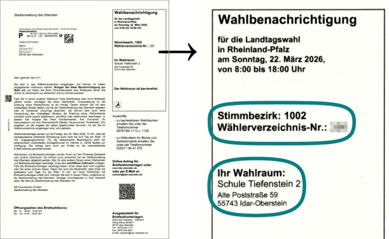 On Sunday, March 22, 2026, the election to the 19th state parliament of Rhineland-Palatinate will take place. In Idar-Oberstein, around 21,500 eligible voters will be called upon to cast their votes. To enable them to reach the polling stations on foot, a total of 23 polling stations will be set up in the city area. There will also be 7 postal voting boards at the Idar-Oberstein exhibition center.